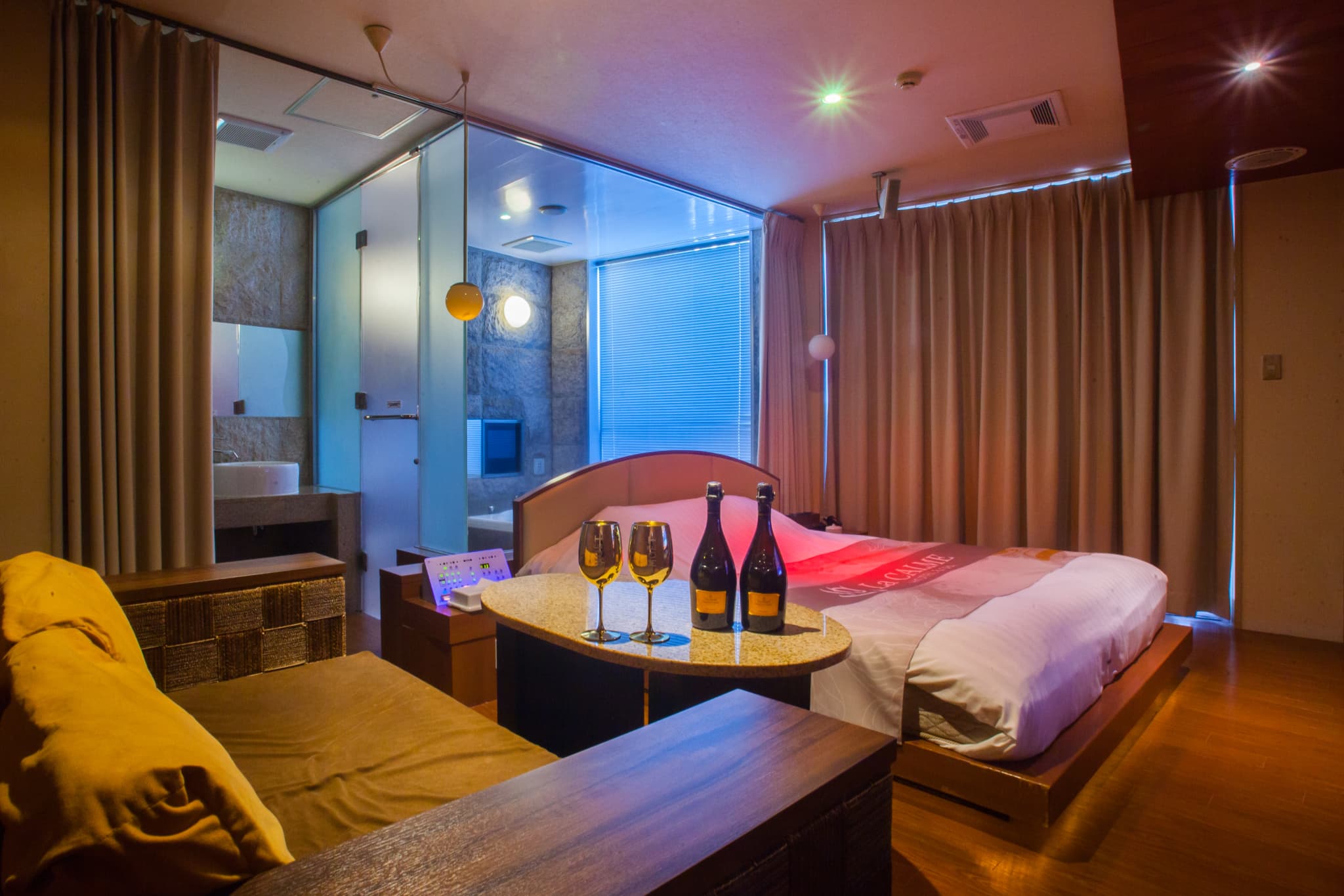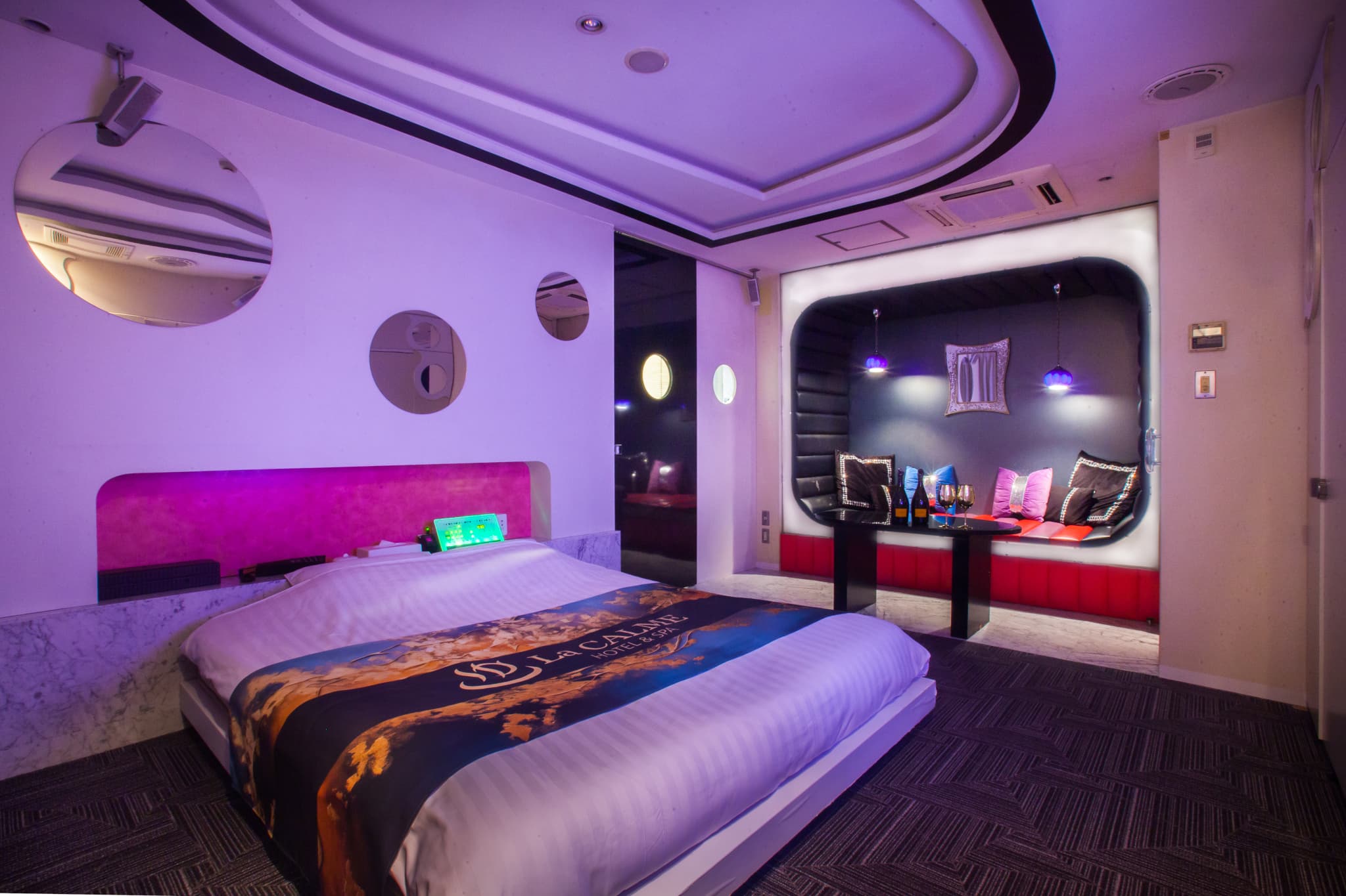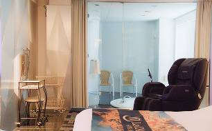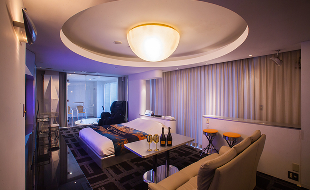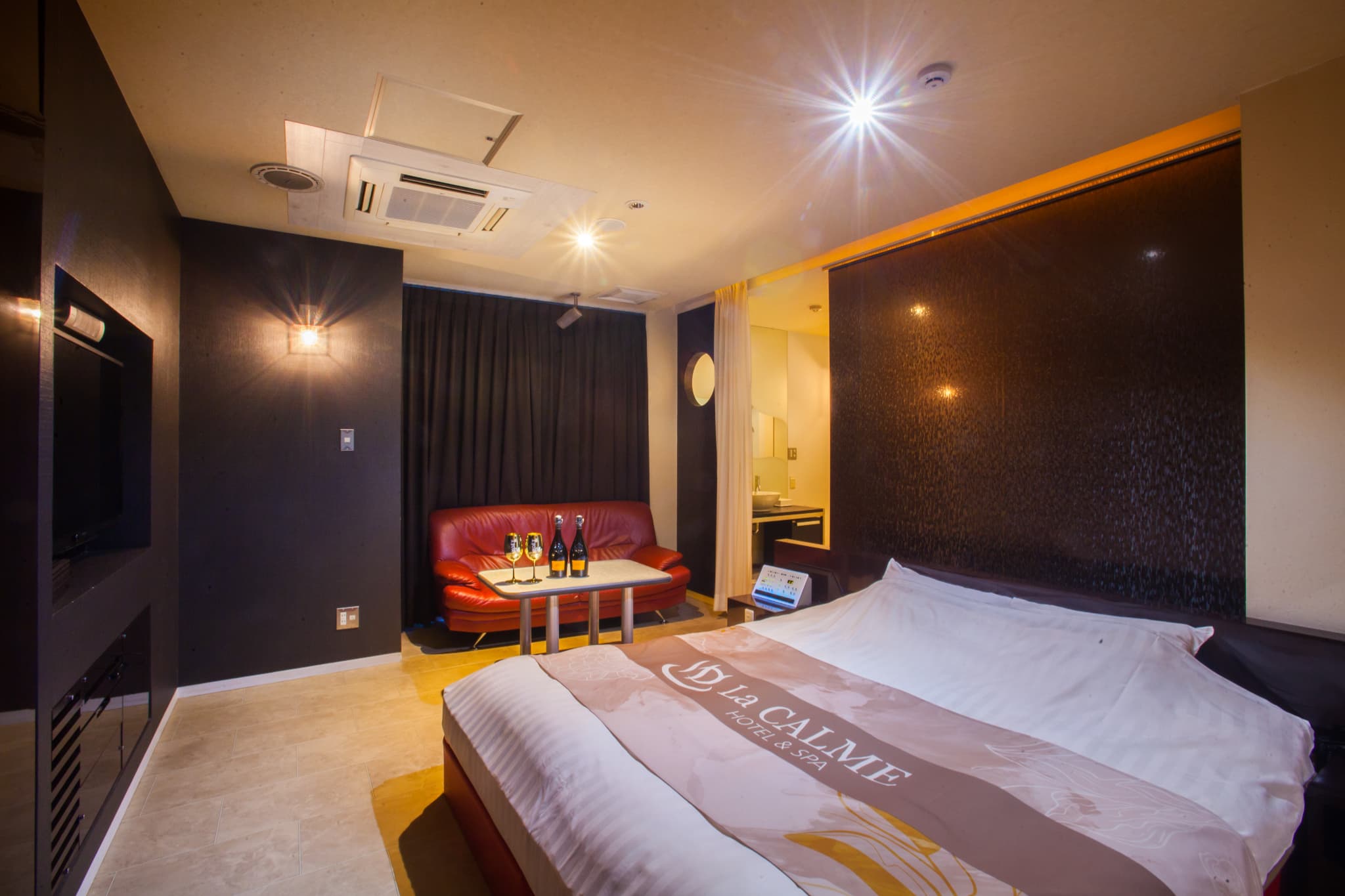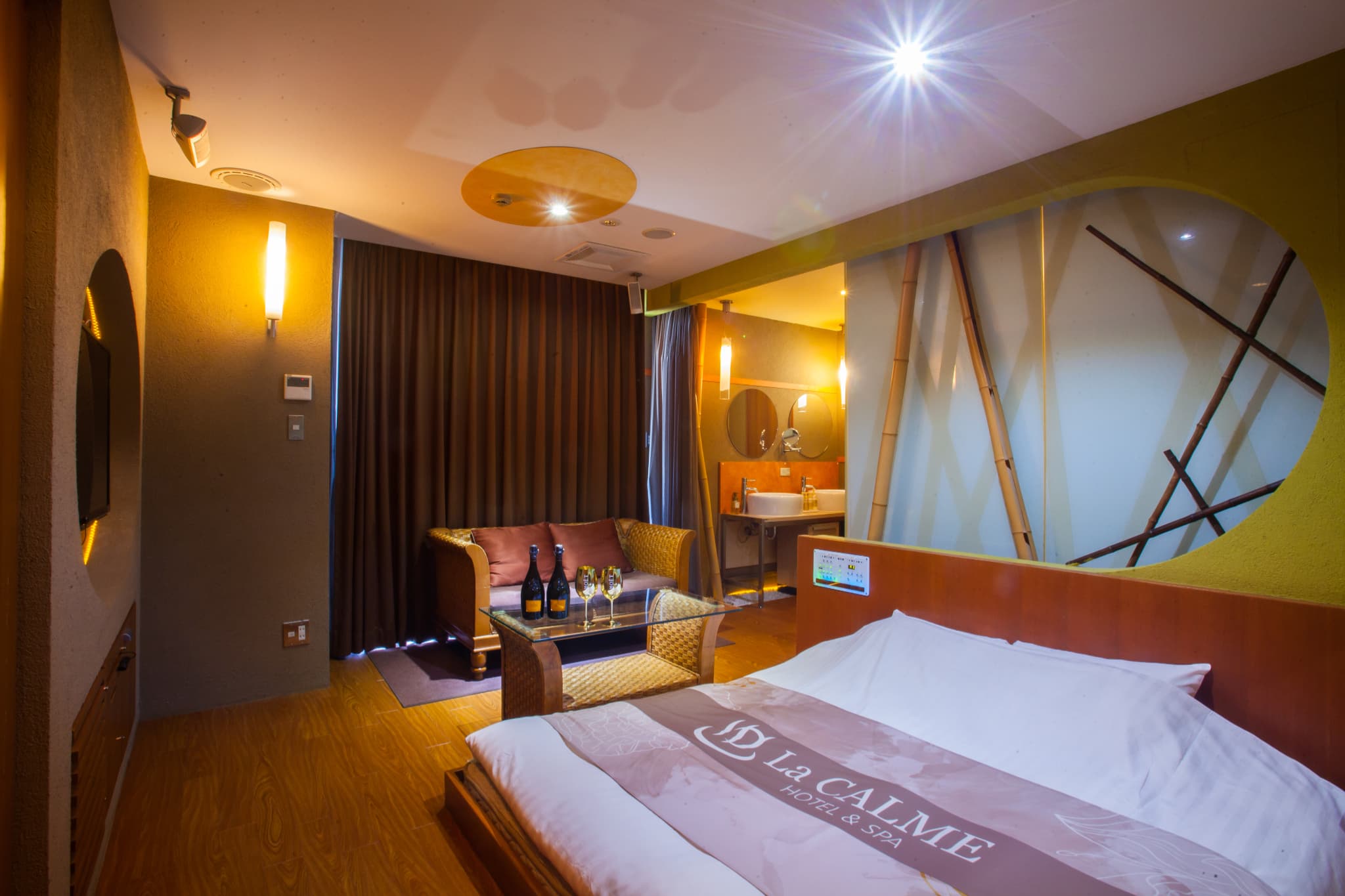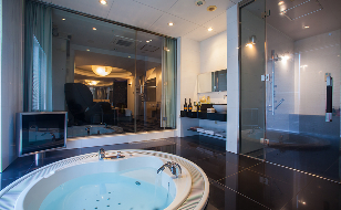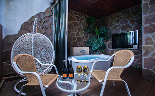 LaCALMEで大人気の露天風呂&岩盤浴のあるプレミアスイート。夜風を感じながらテラスでゆっくりくつろぐのも良いですね♪