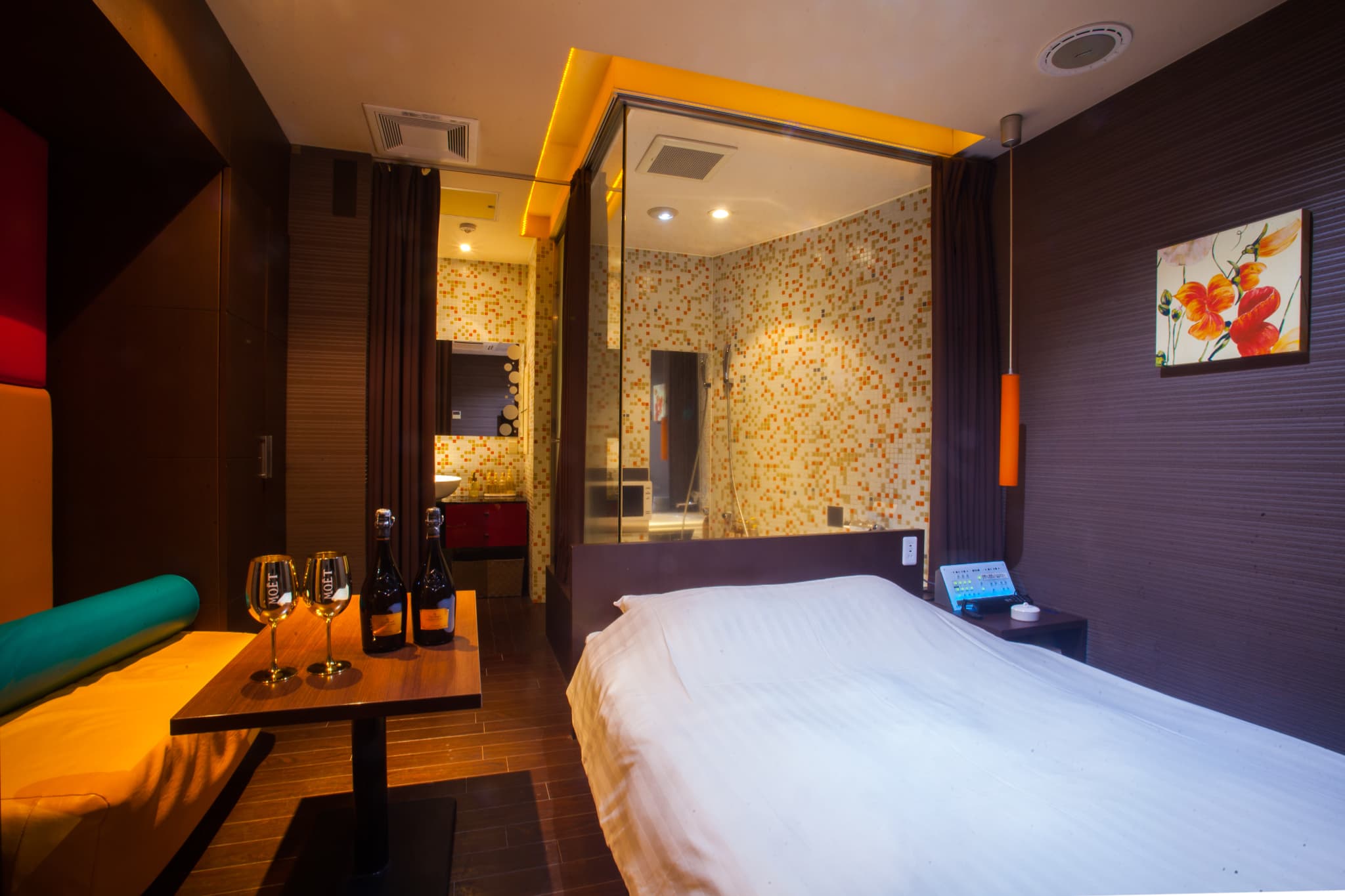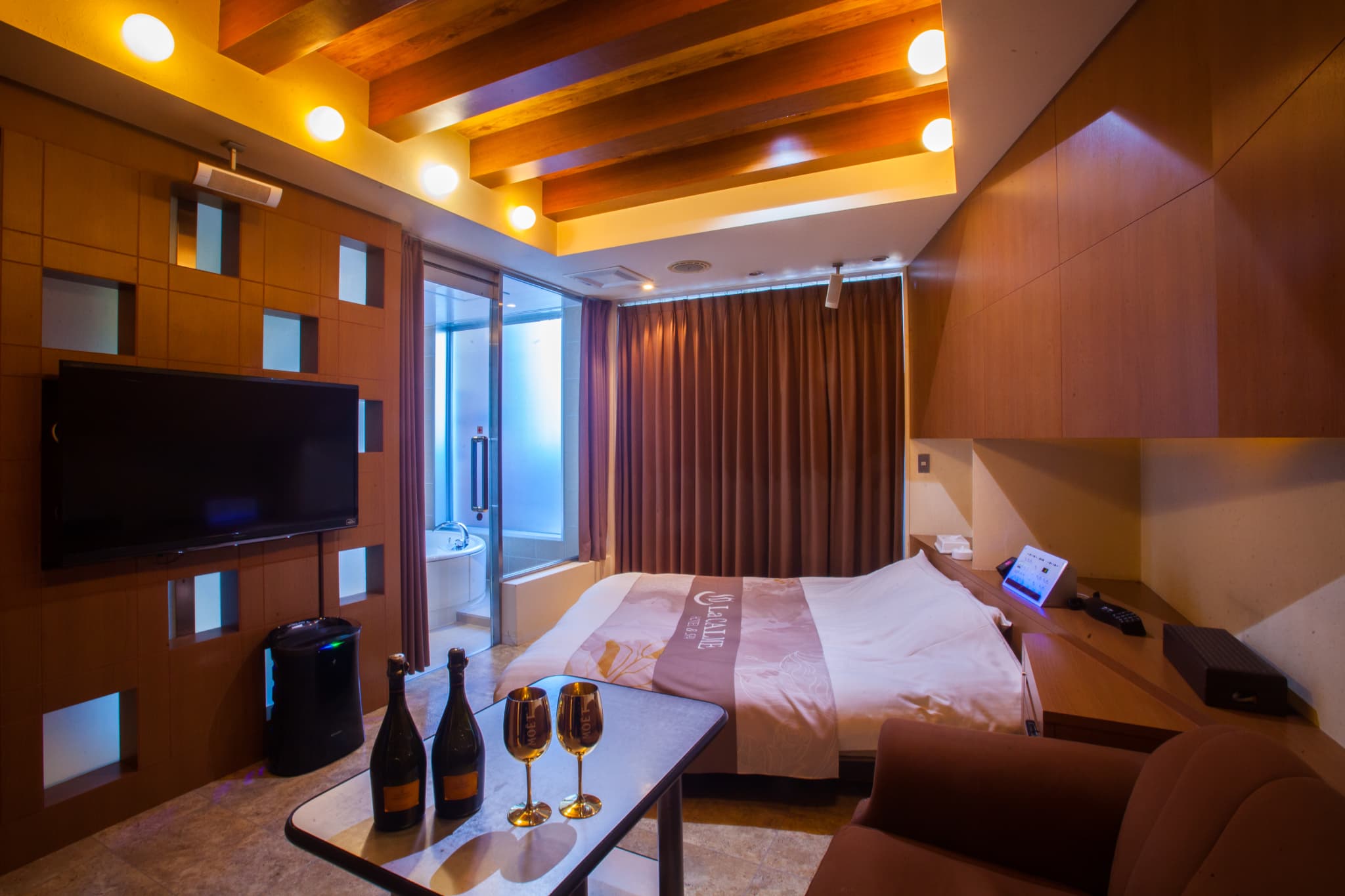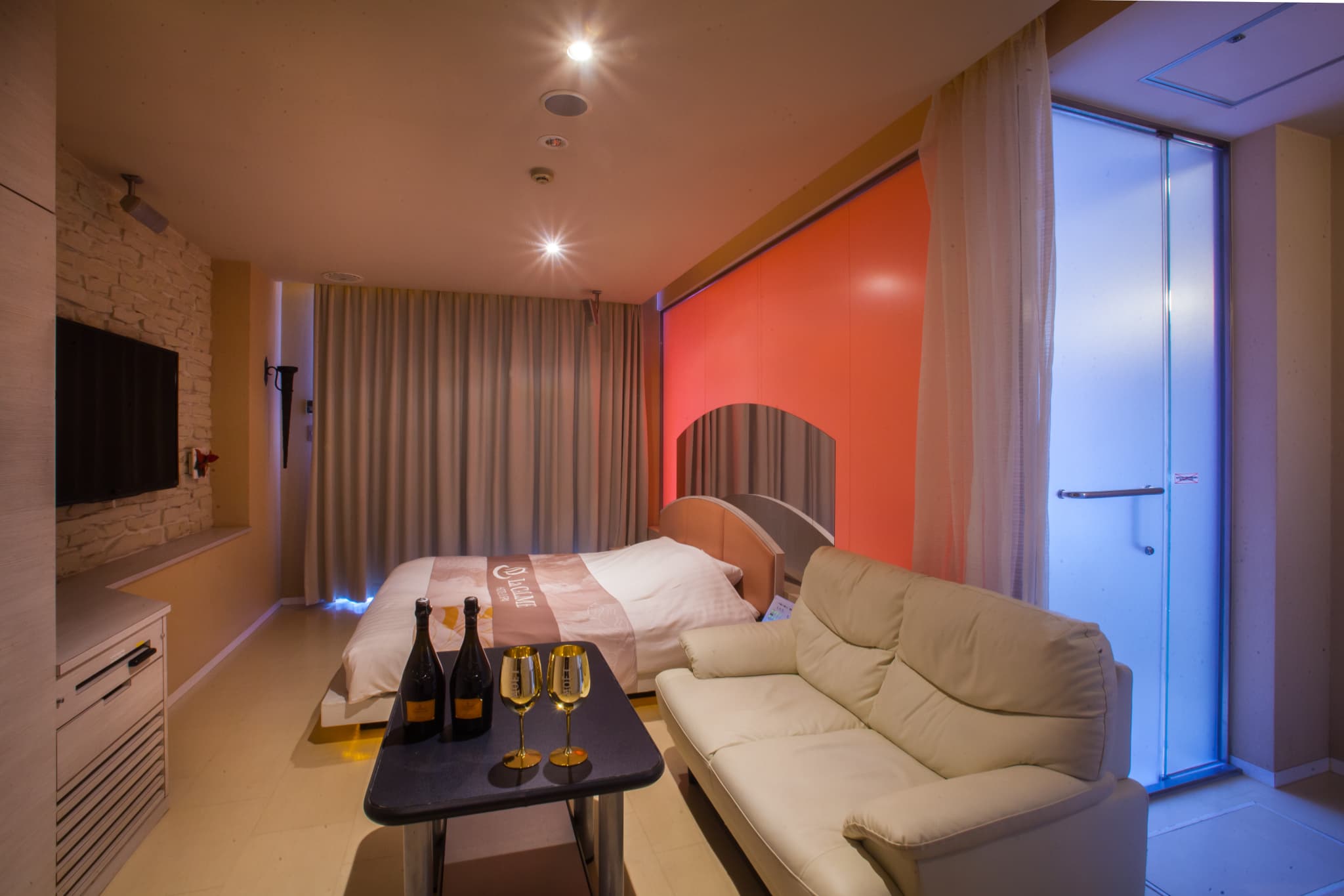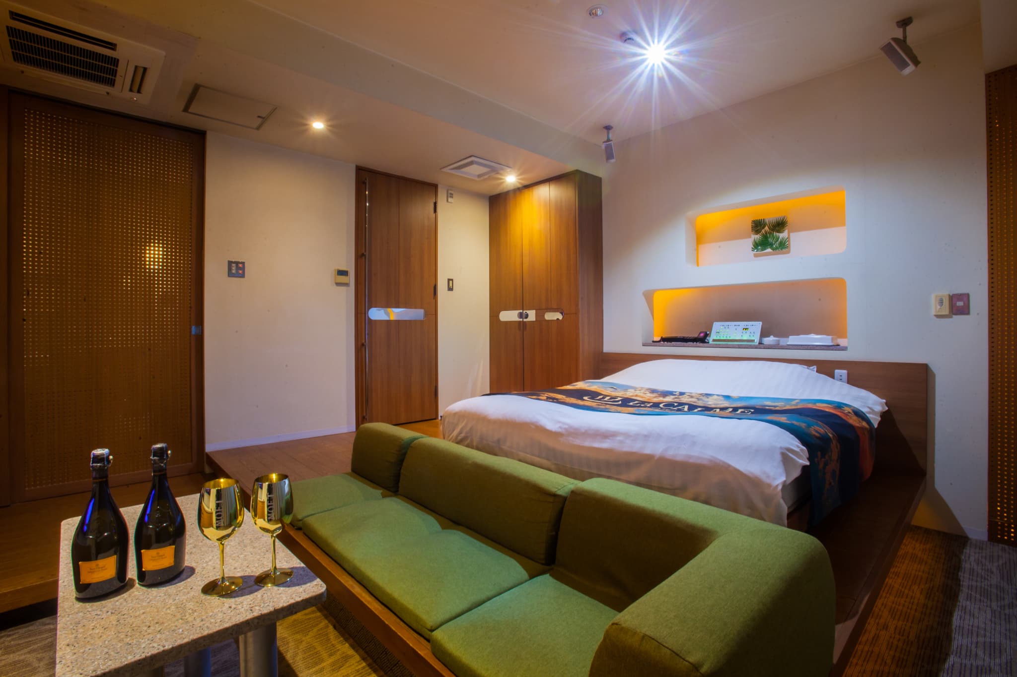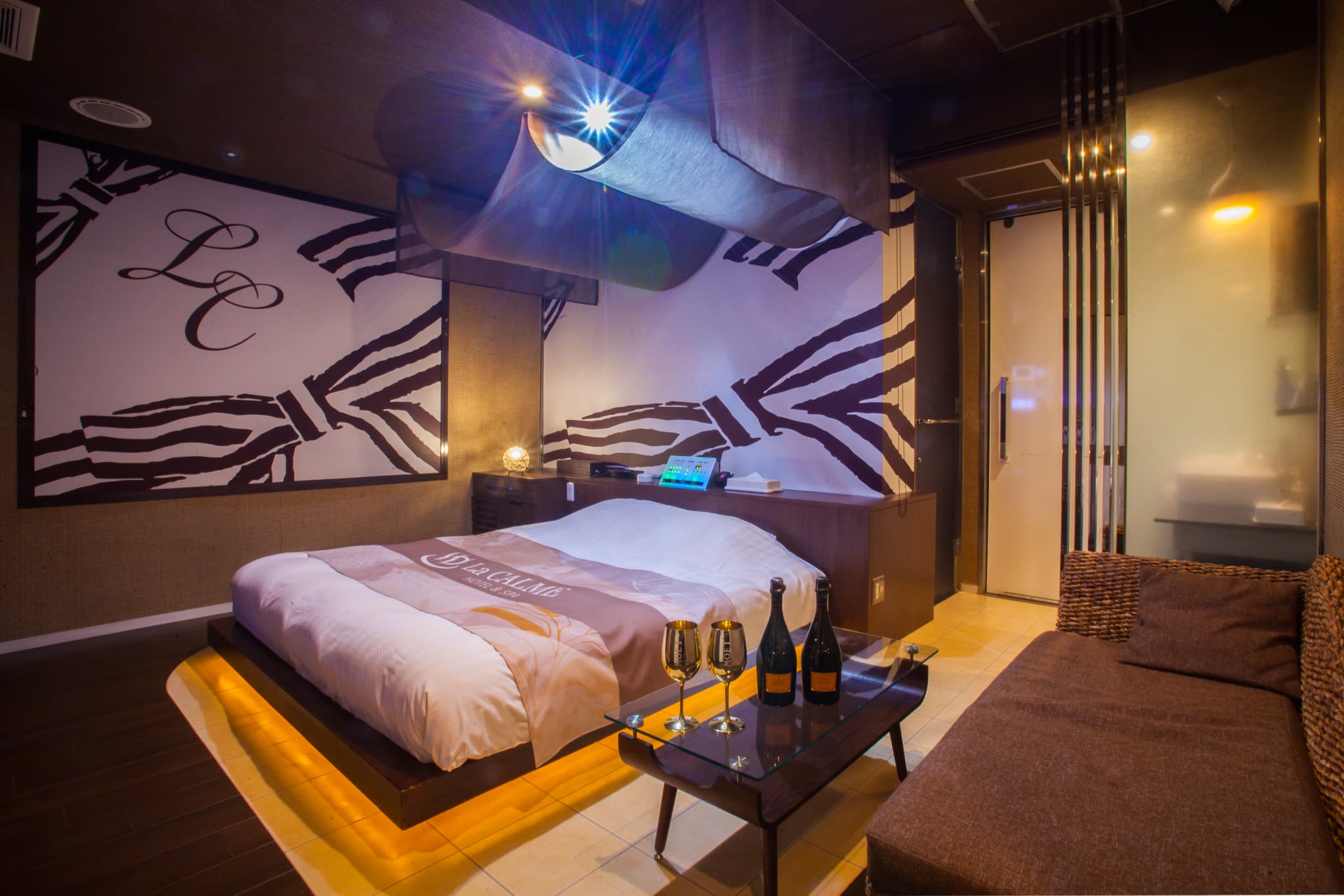 LaCALMEで大人気の露天風呂&岩盤浴のあるプレミアスイート。夜風を感じながらテラスでゆっくりくつろぐのも良いですね♪